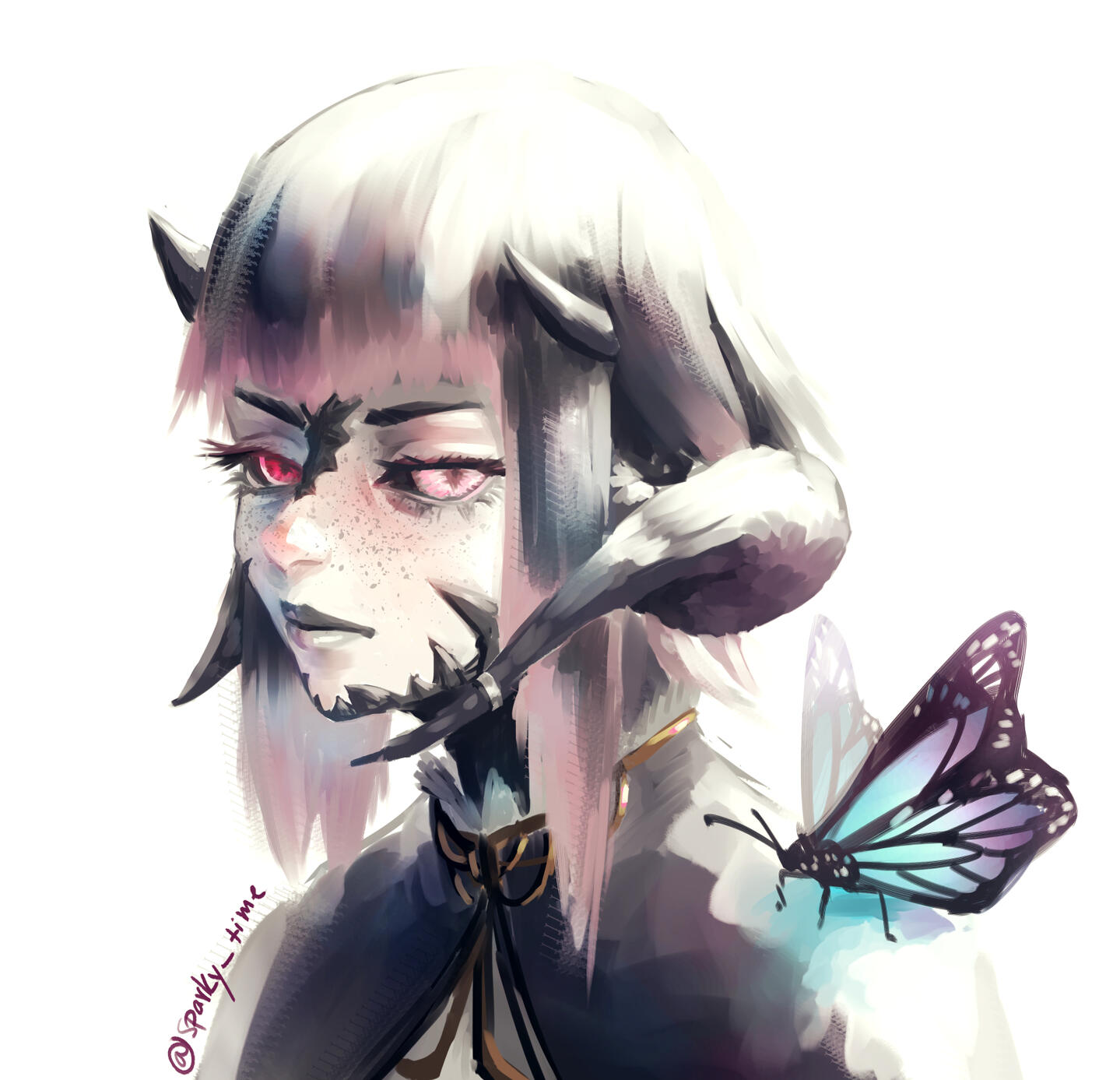 A Xaela of the Kagon tribe. Walking beneath foreign skies in search of knowledge. Ever followed by her glowing companion, an aetherical butterfly, by all appearances."I wish only to learn and protect what is dear to me, is there truly such evil in this desire?"